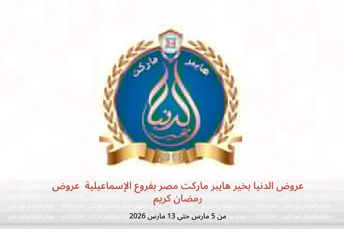 عروض الدنيا بخير هايبر ماركت الإسماعيلية من 5 حتى 13 مارس 2026 عروض رمضان كريم - عروض مصر ilofo