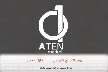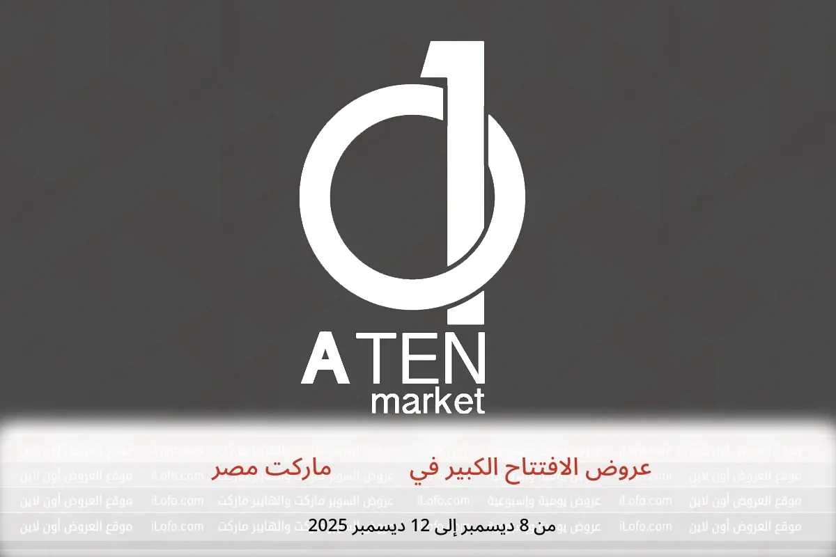 صور وأسعار عروض الافتتاح الكبير في A Ten ماركت مصر المعروضة هنا لأغراض توضيحية فقط ومتاحة من الاثنين, 8 ديسمبر 2025 حتي الجمعة, 12 ديسمبر 2025 ،من i L O F O . C O M.