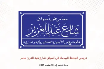 أسواق شارع عبد العزيز مصر تعلن عن تخفيضات جديدة بعنوان « عروض الجمعة البيضاء » المتوفرة حتي يوم 30 نوفمبر 2025, عروض جديدة وأسعار فقط في مصر.