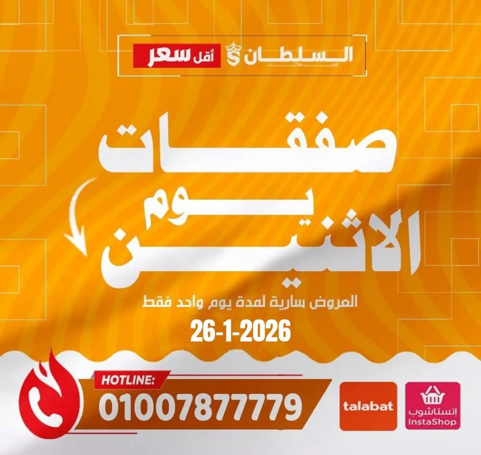 عروض السلطان هايبر ماركت مصر الاثنين 26 يناير 2026 صفقات يوم الاثنين