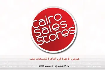 القاهرة للمبيعات مصر تعلن عن تخفيضات جديدة بعنوان « عروض الأجهزة » المتوفرة حتي يوم 3 ديسمبر 2025, عروض جديدة وأسعار فقط في مصر.