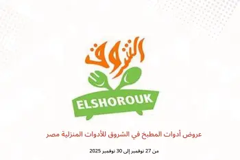 الشروق للأدوات المنزلية مصر تعلن عن تخفيضات جديدة بعنوان « عروض أدوات المطبخ » المتوفرة حتي يوم 30 نوفمبر 2025, عروض جديدة وأسعار فقط في مصر.