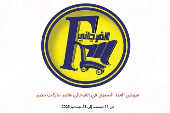 صور وأسعار عروض العيد السنوى في الفرجانى هايبر ماركت مصر المعروضة هنا لأغراض توضيحية فقط ومتاحة من الخميس, 11 ديسمبر 2025 حتي الخميس, 25 ديسمبر 2025 ،من i L O F O . C O M.