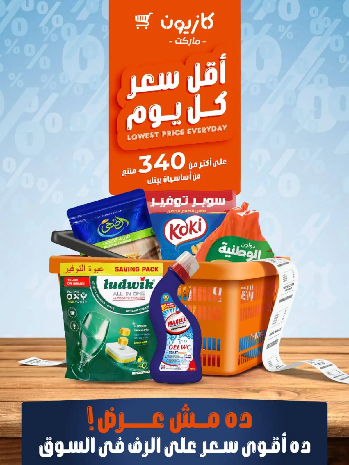 أقل سعر كل يوم على أساسيات بيتك في كازيون ماركت مصر
