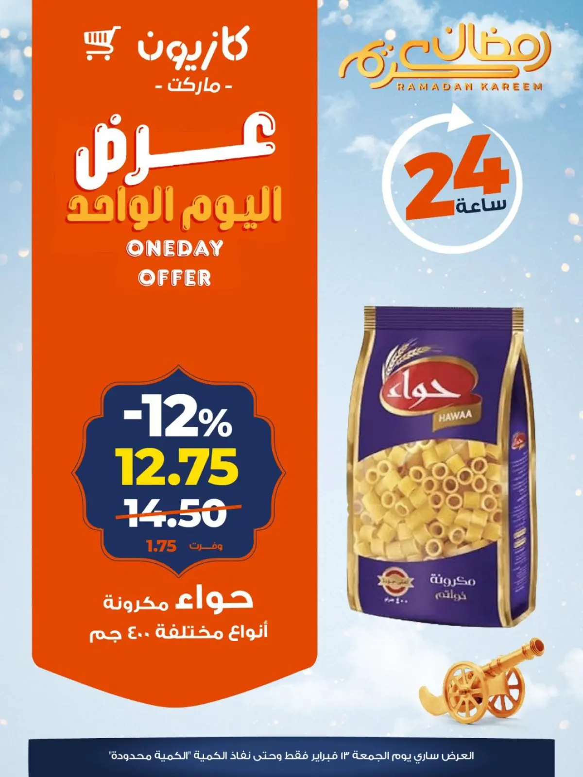 عروض كازيون ماركت مصر الجمعة 13 فبراير 2026 عرض اليوم الواحد