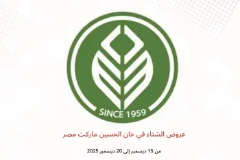 صور وأسعار عروض الشتاء في خان الحسين ماركت مصر المعروضة هنا لأغراض توضيحية فقط ومتاحة من الاثنين, 15 ديسمبر 2025 حتي السبت, 20 ديسمبر 2025 ،من i L O F O . C O M.