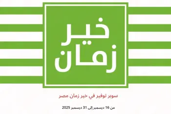 خير زمان مصر تعلن عن تخفيضات جديدة بعنوان « سوبر توفير » المتوفرة حتي يوم 31 ديسمبر 2025, عروض جديدة وأسعار فقط في مصر.