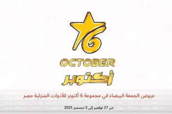 مجموعة 6 أكتوبر للأدوات المنزلية مصر تعلن عن تخفيضات جديدة بعنوان « عروض الجمعة البيضاء » المتوفرة حتي يوم 3 ديسمبر 2025, عروض جديدة وأسعار فقط في مصر.