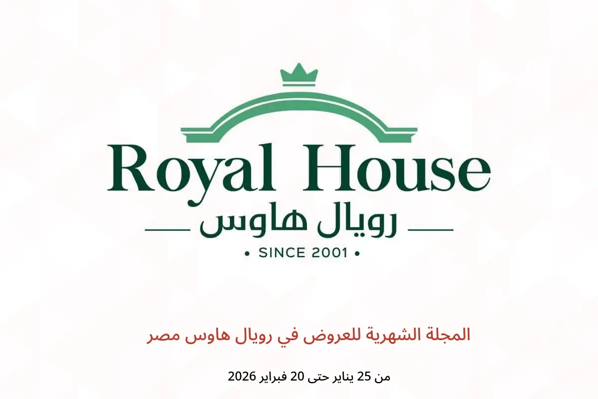 اكتشف أحدث عروض رويال هاوس في مصر اليوم وتصفح كاتالوج المجلة الشهرية للعروض واستفد من أفضل الأسعار حتى 20 فبراير 2026.