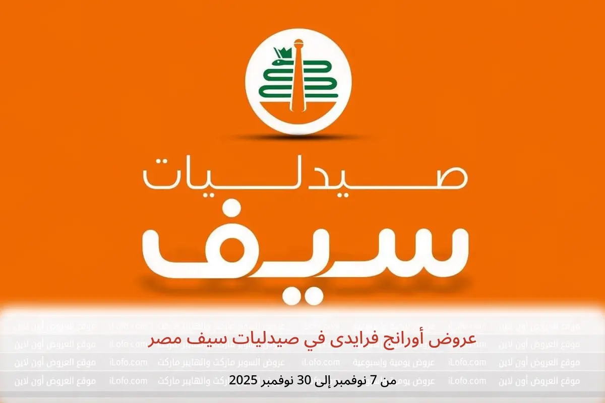 صور وأسعار عروض أورانج فرايدى في صيدليات سيف مصر المعروضة هنا لأغراض توضيحية فقط ومتاحة من الجمعة, 7 نوفمبر 2025 حتي الأحد, 30 نوفمبر 2025 ،من i L O F O . C O M.