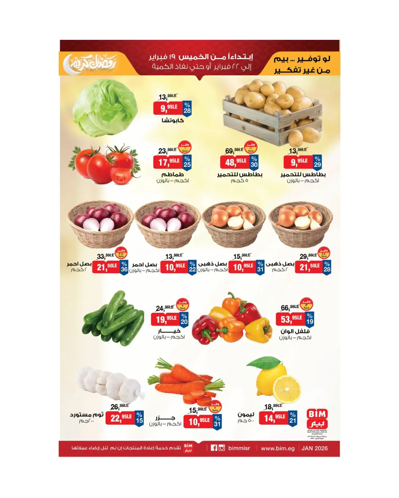 تنويه: صور وأسعار عروض الخضار والفاكهة في بيم ماركت مصر المعروضة في هذا الكاتالوج لأغراض توضيحية فقط، وتخضع للتوفر في الفروع خلال فترة العرض.