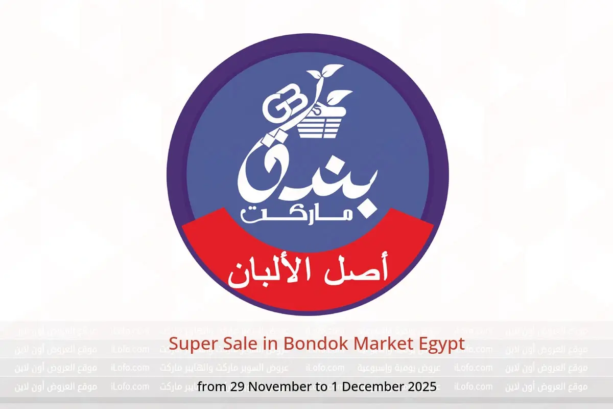 Bondok Market Egypt announces new discounts titled « Super Sale » available until 1 December 2025, new offers and prices only in Egypt.