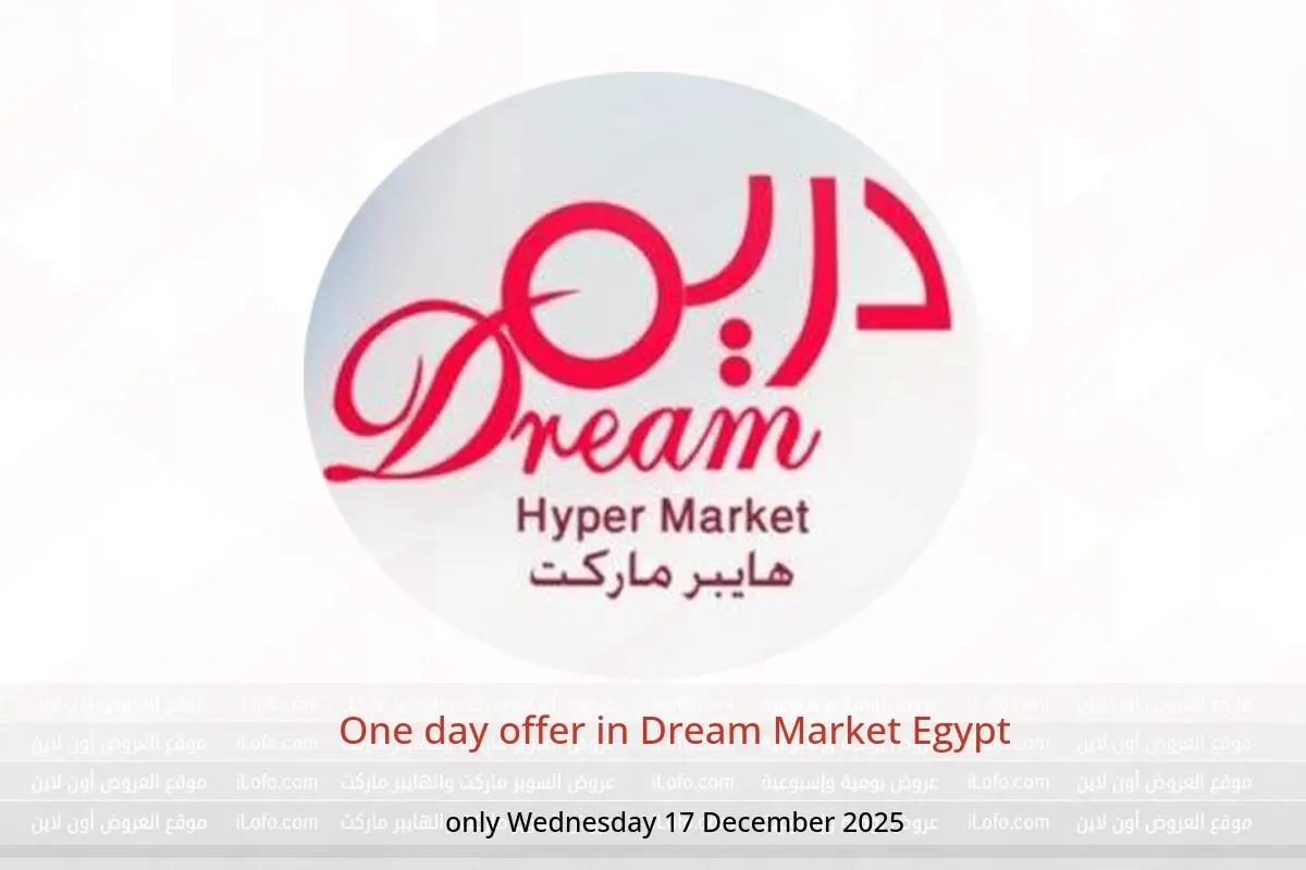Dream Market Egypt announces new discounts titled « One day offer » available until 17 December 2025, new offers and prices only in Egypt.