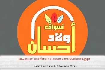 Hassan Sons Markets Egypt announces new discounts titled « Lowest price offers » available until 2 December 2025, new offers and prices only in Egypt.