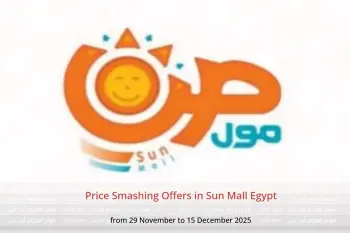 Sun Mall Egypt announces new discounts titled « Price Smashing Offers » available until 15 December 2025, new offers and prices only in Egypt.