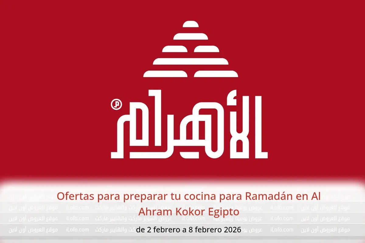 Descubre las últimas ofertas de Al Ahram Kokor en Egipto hoy . Consulta el catálogo Ofertas para preparar tu cocina para Ramadán, disponible hasta 8 febrero 2026.