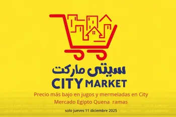 City Mercado Egipto en sucursales Quena anuncia nuevos descuentos titulados « Precio más bajo en jugos y mermeladas » disponibles hasta el día 11 diciembre 2025, nuevas ofertas y precios sólo en Egipto.