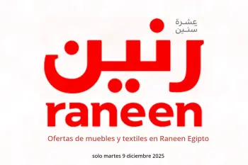 Raneen Egipto anuncia nuevos descuentos titulados « Ofertas de muebles y textiles » disponibles hasta el día 9 diciembre 2025, nuevas ofertas y precios sólo en Egipto.