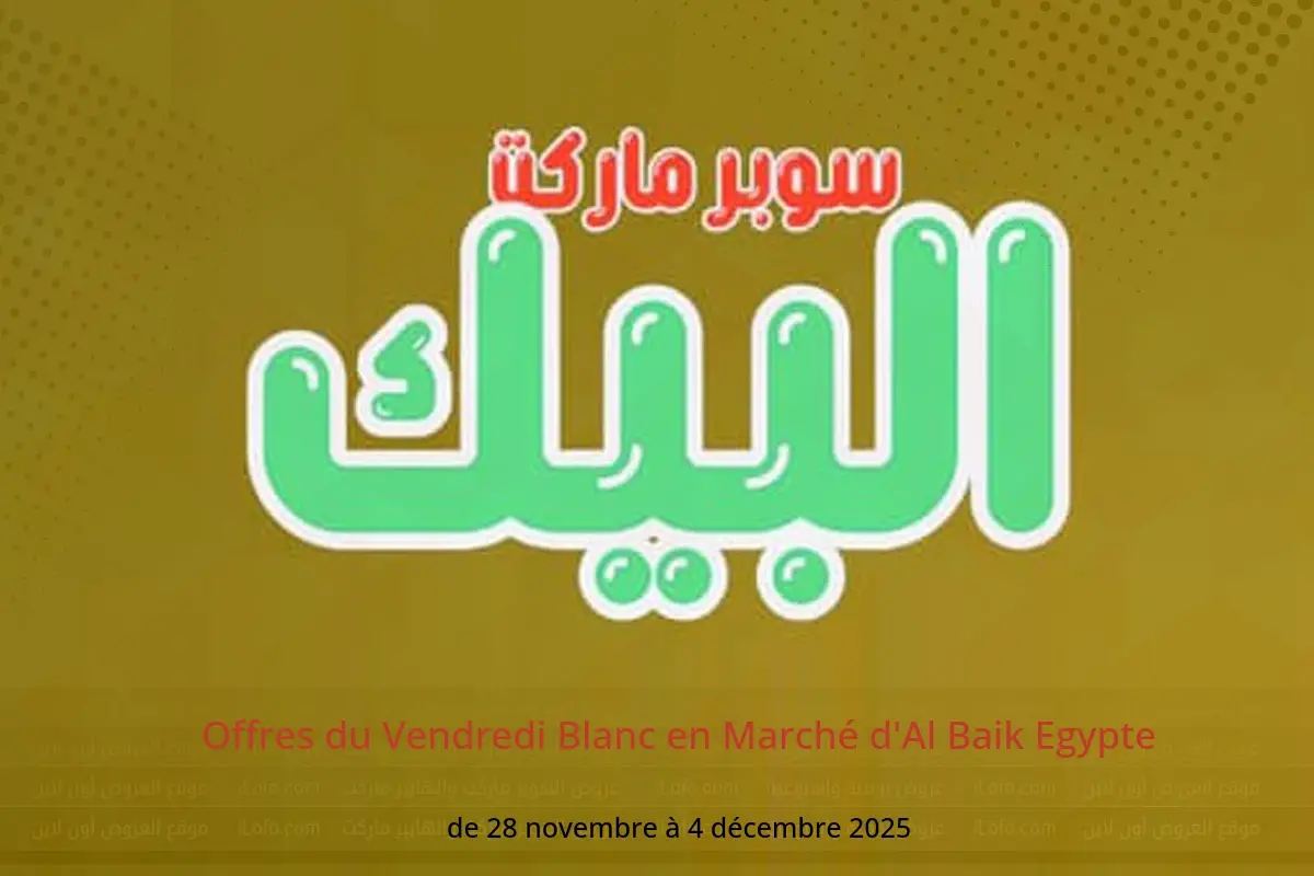 Marché d'Al Baik Egypte annonce de nouvelles réductions intitulées « Offres du Vendredi Blanc » disponibles jusqu'au 4 décembre 2025, de nouvelles offres et prix uniquement en Egypte.