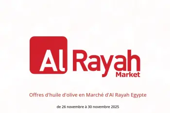 Marché d'Al Rayah Egypte annonce de nouvelles réductions intitulées « Offres d'huile d'olive » disponibles jusqu'au 30 novembre 2025, de nouvelles offres et prix uniquement en Egypte.