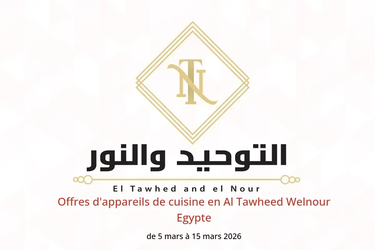 Offres Al Tawheed Welnour Egypte de 5 à 15 mars 2026 Offres d'appareils de cuisine