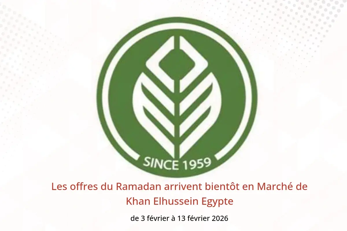 Découvrez les dernières offres Marché de Khan Elhussein en Egypte aujourd’hui . Consultez le catalogue Les offres du Ramadan arrivent bientôt, disponible jusqu’au 13 février 2026.