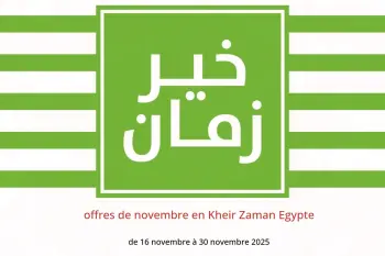 Kheir Zaman Egypte annonce de nouvelles réductions intitulées « offres de novembre » disponibles jusqu'au 30 novembre 2025, de nouvelles offres et prix uniquement en Egypte.