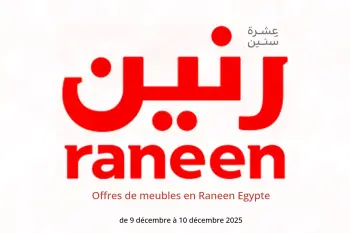 Raneen Egypte annonce de nouvelles réductions intitulées « Offres de meubles » disponibles jusqu'au 10 décembre 2025, de nouvelles offres et prix uniquement en Egypte.