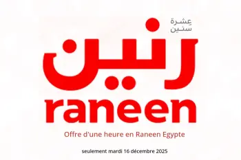 Raneen Egypte annonce de nouvelles réductions intitulées « Offre d'une heure » disponibles jusqu'au 16 décembre 2025, de nouvelles offres et prix uniquement en Egypte.