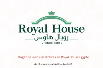 Royal House Egypte annonce de nouvelles réductions intitulées « Magazine mensuel d'offres » disponibles jusqu'au 20 décembre 2025, de nouvelles offres et prix uniquement en Egypte.